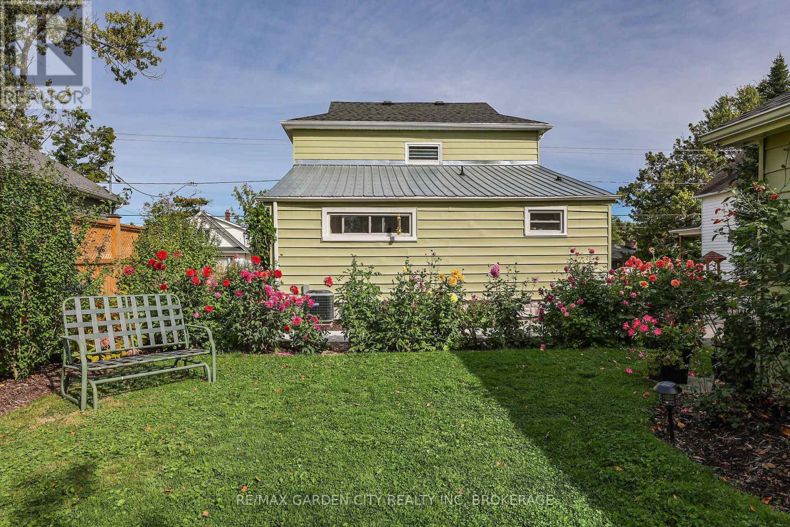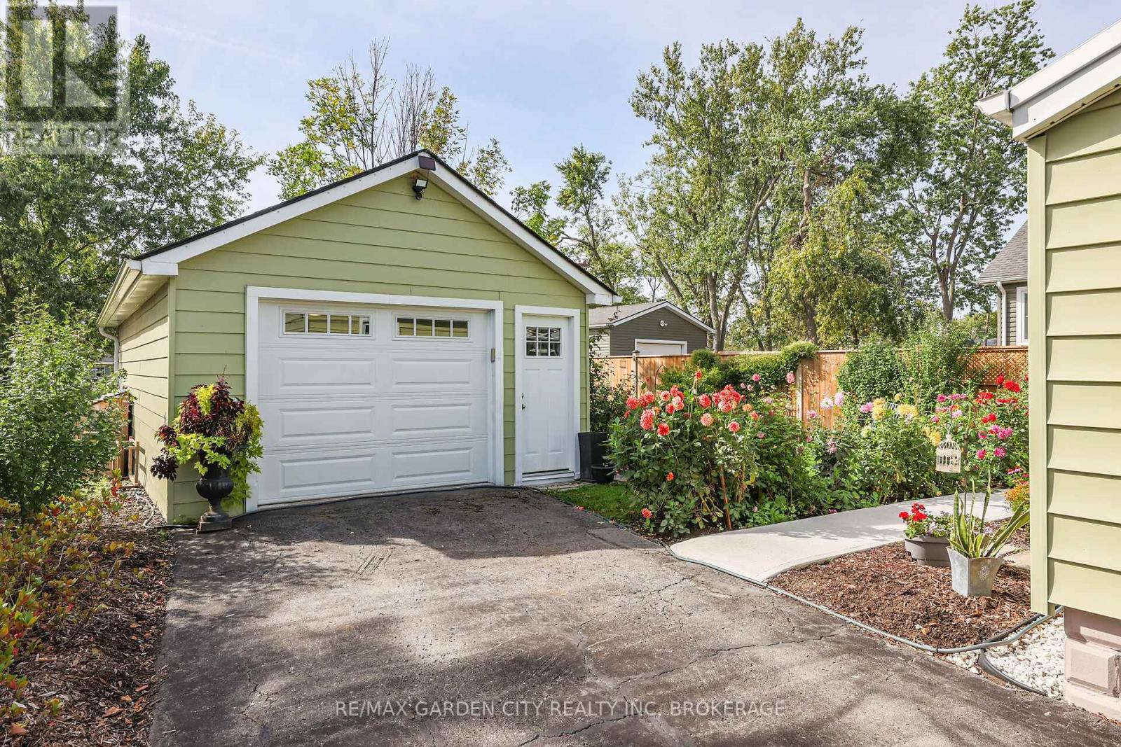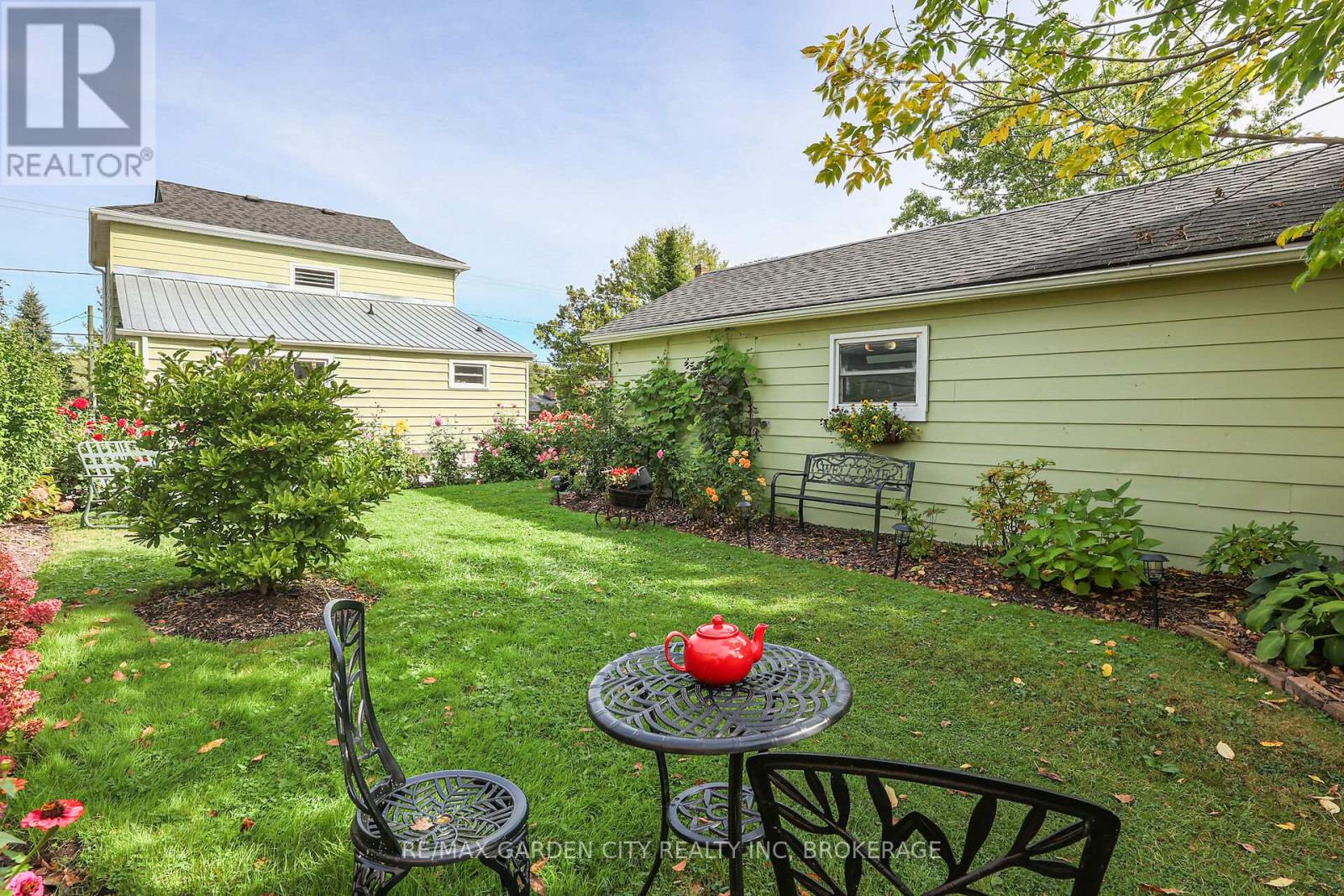 Victorian-era home nestled in the heart of the friendly village of Stevensville welcomes you to 1,153 sq.ft. of lovingly renovated space. Modern updates blend seamlessly with timeless charm and character. Upstairs, you will find three well-appointed bedrooms; the downstairs den easily serves as a fourth bedroom when needed. The main floor features an updated bathroom and laundry room. Recent improvements add to curb appeal and functionality. A new front door with stained-glass window greets you, complemented by fresh shutters and window boxes. New concrete sidewalks enhance the front, side and back of the house, leading to a 16x32 garage/workshop. The clean, partial basement offers ample storage space. Comfort and efficiency are ensured with the on-demand, owned hot water system, gas furnace and central air conditioning. Well insulated, the home provides cozy warmth in winter and cool comfort on hot summer days. This meticulously maintained property is in move-in-ready condition, offering an easy transition to the new owners. Quality education for children is offered at Stevensville Public School. Local amenities include Stevensville Garden Centre, Safari Niagara Zoo, Tim Horton's, little restaurants, and, in summer, Jazzy Scoops ice cream. The Friendship Trail and Crystal Beach are nearby. The property stands out with its impressive 264-foot-deep lot that backs onto a park featuring a playground, splash pad and tennis courts close to the library and community centre. Extensive landscaping has transformed the backyard into a showcase flower garden, complete with fruit trees, cute shed and raised beds for organic vegetables. (id:10317)