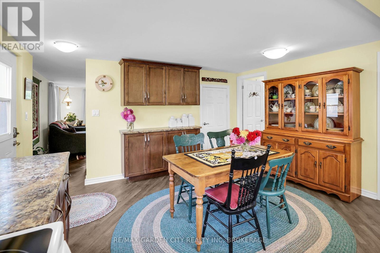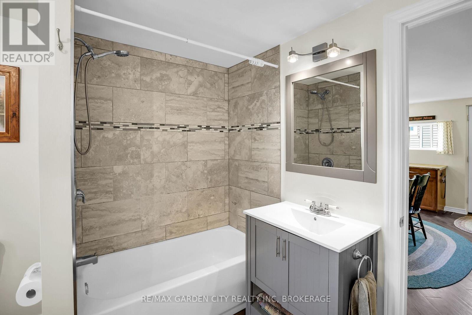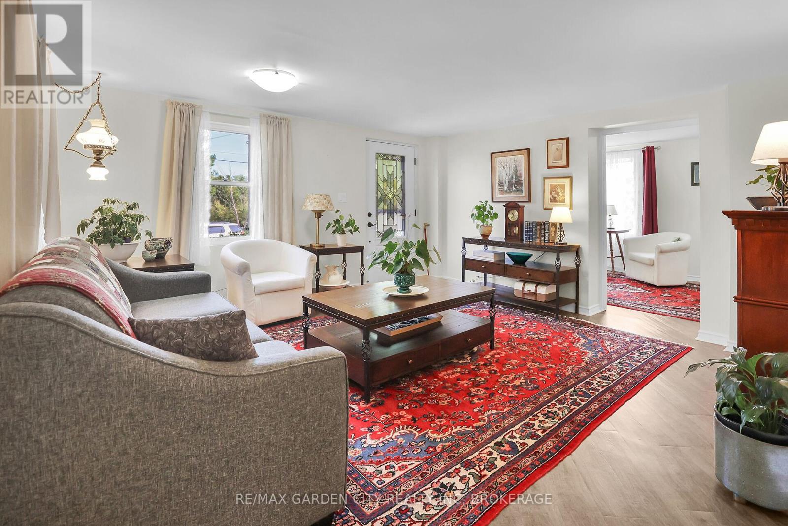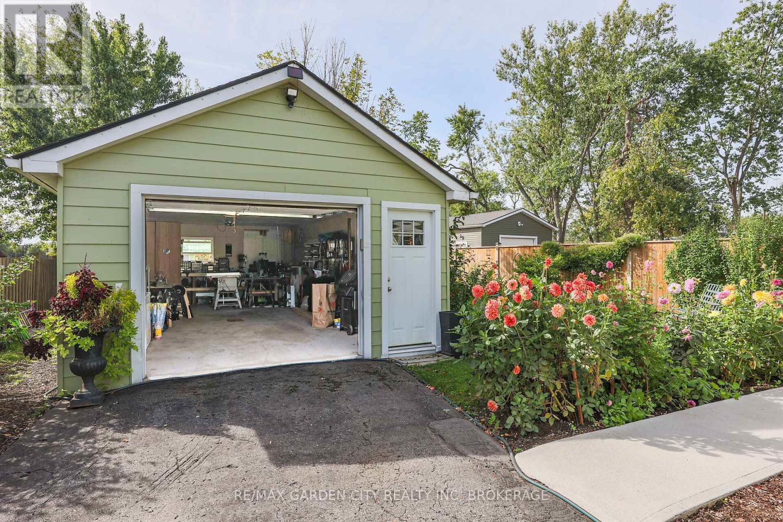 Victorian-era home nestled in the heart of the friendly village of Stevensville welcomes you to 1,153 sq.ft. of lovingly renovated space. Modern updates blend seamlessly with timeless charm and character. Upstairs, you will find three well-appointed bedrooms; the downstairs den easily serves as a fourth bedroom when needed. The main floor features an updated bathroom and laundry room. Recent improvements add to curb appeal and functionality. A new front door with stained-glass window greets you, complemented by fresh shutters and window boxes. New concrete sidewalks enhance the front, side and back of the house, leading to a 16x32 garage/workshop. The clean, partial basement offers ample storage space. Comfort and efficiency are ensured with the on-demand, owned hot water system, gas furnace and central air conditioning. Well insulated, the home provides cozy warmth in winter and cool comfort on hot summer days. This meticulously maintained property is in move-in-ready condition, offering an easy transition to the new owners. Quality education for children is offered at Stevensville Public School. Local amenities include Stevensville Garden Centre, Safari Niagara Zoo, Tim Horton's, little restaurants, and, in summer, Jazzy Scoops ice cream. The Friendship Trail and Crystal Beach are nearby. The property stands out with its impressive 264-foot-deep lot that backs onto a park featuring a playground, splash pad and tennis courts close to the library and community centre. Extensive landscaping has transformed the backyard into a showcase flower garden, complete with fruit trees, cute shed and raised beds for organic vegetables. (id:10317)