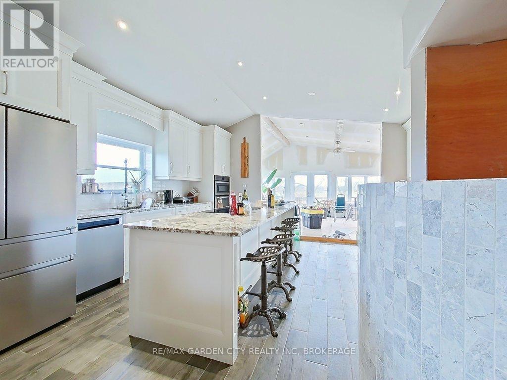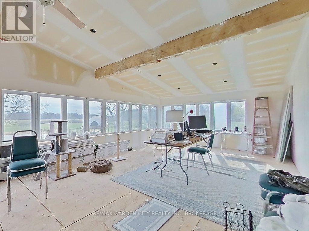 Over 23 Acres of private country living, yet only minutes to all amenities and the QEW. Picturesque property with rolling fields, tree lines and pond. Suitable for many agricultural uses. Older 2 storey board and batten barn with hand-hewn beams in need of some TLC for those wedding venues. Circular drive with a solid open concept bungalow built in the 60's. Attached double car garage addition with full walkout basement, rec room, 2pc bath, wine cellar, mudroom with sink and counter. Two bedrooms on the main floor, the master with 4pc ensuite privileges. Open concept living and dining area with maple hardwood flooring, Freshly renovated kitchen with granite counters and island, built ins, vaulted ceiling with pot lights, open to a massive family room, bright windows throughout, patio doors to a private backyard patio overlooking your pond and property. This one of a kind property could be an unbelievable homestead with some imagination and TLC. (id:10317)