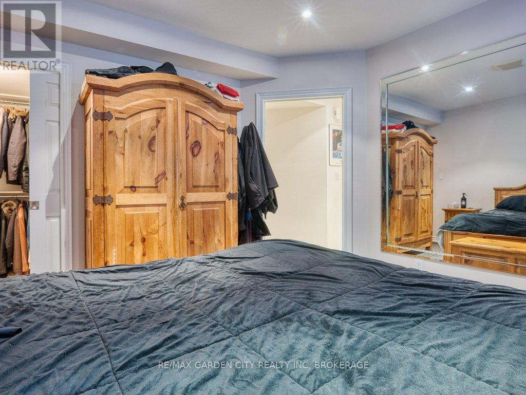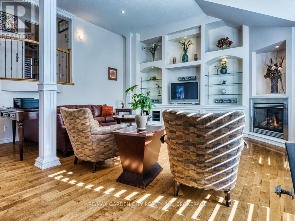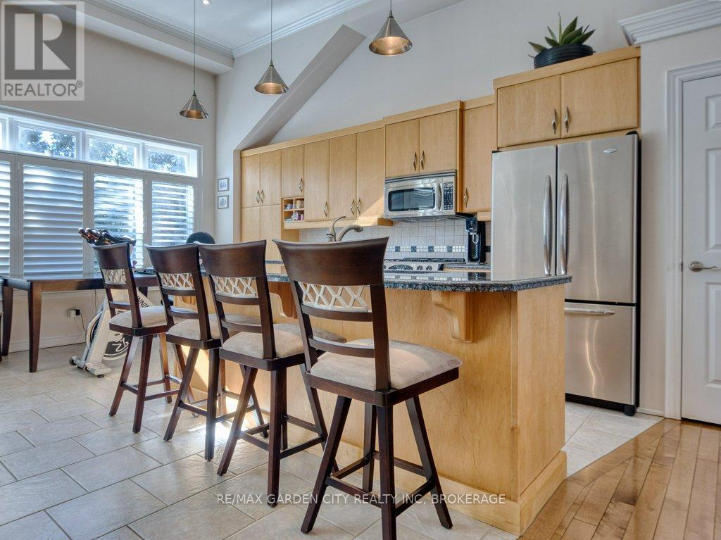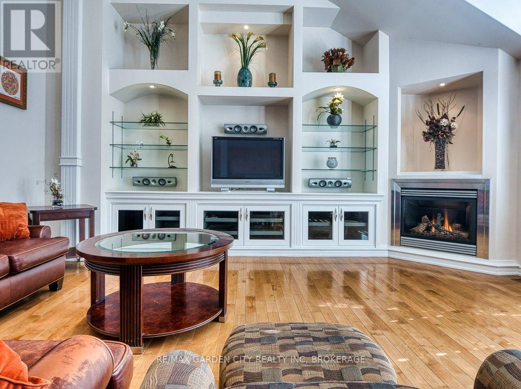 Welcome to prestigious Cobblestone Gates, an upscale townhome community in the Martindale area, backing onto the Twelve Mile Creek corridor. This well maintained end unit has a double concrete driveway with attached double car garage and electric opener. Mature landscaping with private backyard area and side deck, lawn irrigation system. Grand pillars and covered entrance invite you to a spacious tiled foyer, 2-piece powder room and garage access. The bright open concept great room/kitchen, boasts soaring vaulted ceilings with cove molding and pot lights, built in cabinetry, gas fireplace, rich hardwood flooring, garden doors to deck, California shutters, dining area, custom dovetailed maple kitchen cabinets, blue granite countertops, island and counter lighting. The master bedroom has hardwood floors, 4-piece ensuite, separate shower and air tub, walk in closet plus a secondary closet with rough in for laundry. Laundry chute to lower level. Lower level has high ceilings plus 2 finished bedrooms and walk in closets, storage room, shelving, laundry room, 3-piece with sit down shower, sump pump, alarm system, FAG, CA, CV. Enjoy this carefree living with exterior maintenance handled for you. Surrounded by nature, walking trails, the Merritt Trail and only minutes to the city center, restaurants, new hospital, Performing Arts Center, QEW, 406 Hwy easy access and all amenities. (id:10317)