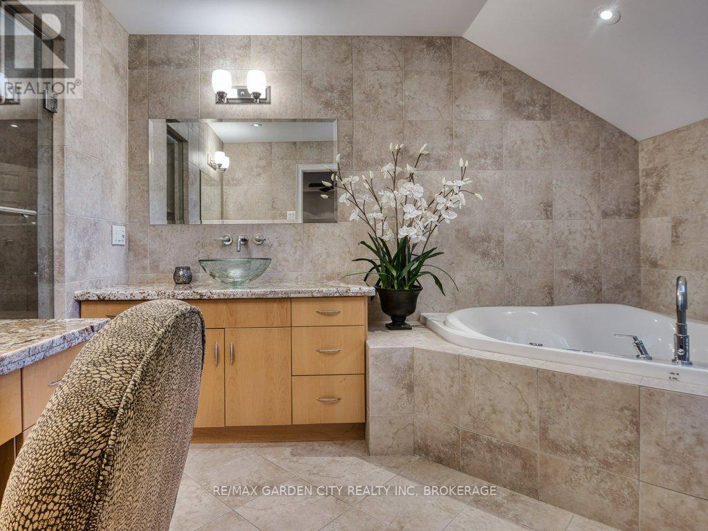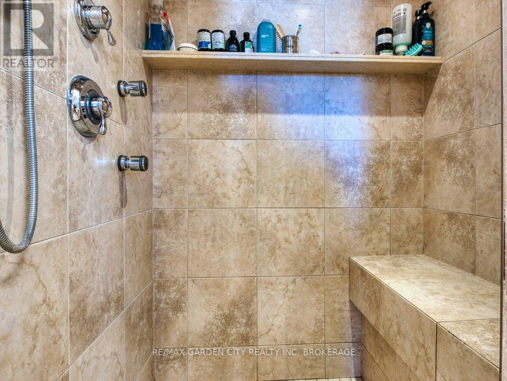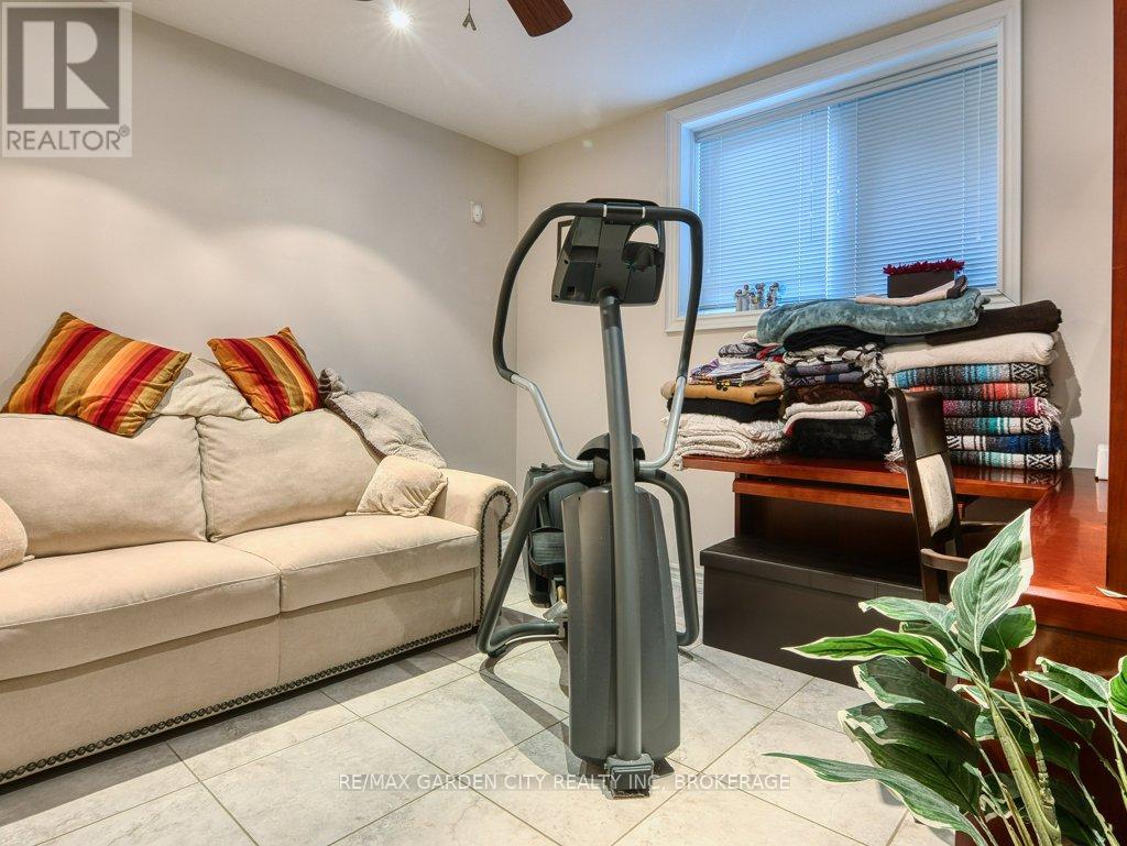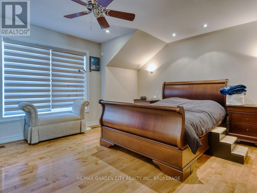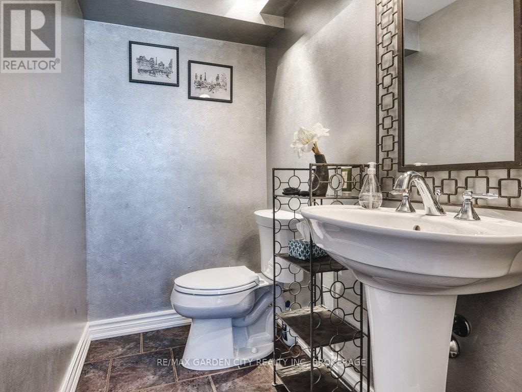 Welcome to prestigious Cobblestone Gates, an upscale townhome community in the Martindale area, backing onto the Twelve Mile Creek corridor. This well maintained end unit has a double concrete driveway with attached double car garage and electric opener. Mature landscaping with private backyard area and side deck, lawn irrigation system. Grand pillars and covered entrance invite you to a spacious tiled foyer, 2-piece powder room and garage access. The bright open concept great room/kitchen, boasts soaring vaulted ceilings with cove molding and pot lights, built in cabinetry, gas fireplace, rich hardwood flooring, garden doors to deck, California shutters, dining area, custom dovetailed maple kitchen cabinets, blue granite countertops, island and counter lighting. The master bedroom has hardwood floors, 4-piece ensuite, separate shower and air tub, walk in closet plus a secondary closet with rough in for laundry. Laundry chute to lower level. Lower level has high ceilings plus 2 finished bedrooms and walk in closets, storage room, shelving, laundry room, 3-piece with sit down shower, sump pump, alarm system, FAG, CA, CV. Enjoy this carefree living with exterior maintenance handled for you. Surrounded by nature, walking trails, the Merritt Trail and only minutes to the city center, restaurants, new hospital, Performing Arts Center, QEW, 406 Hwy easy access and all amenities. (id:10317)