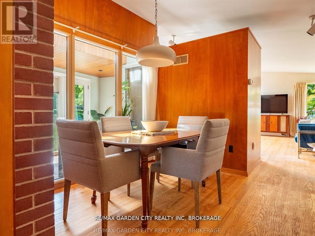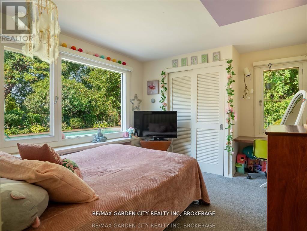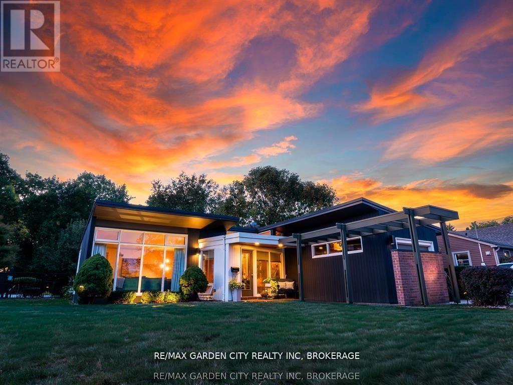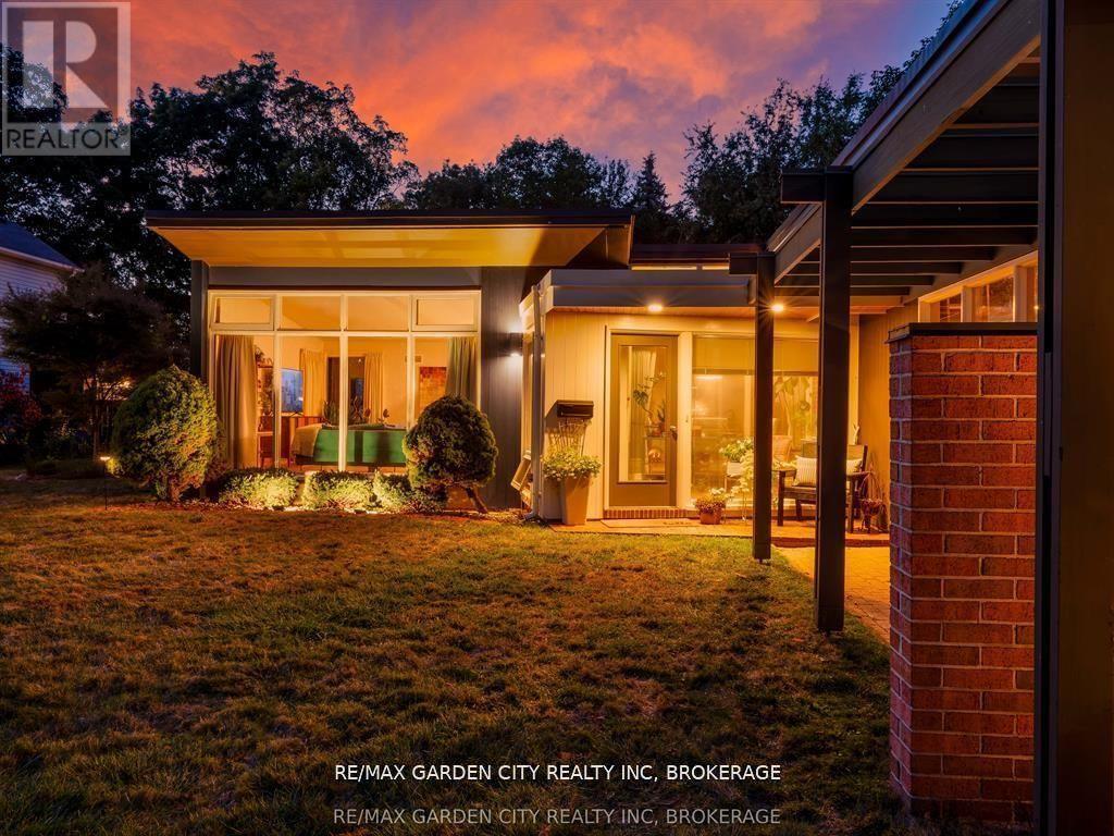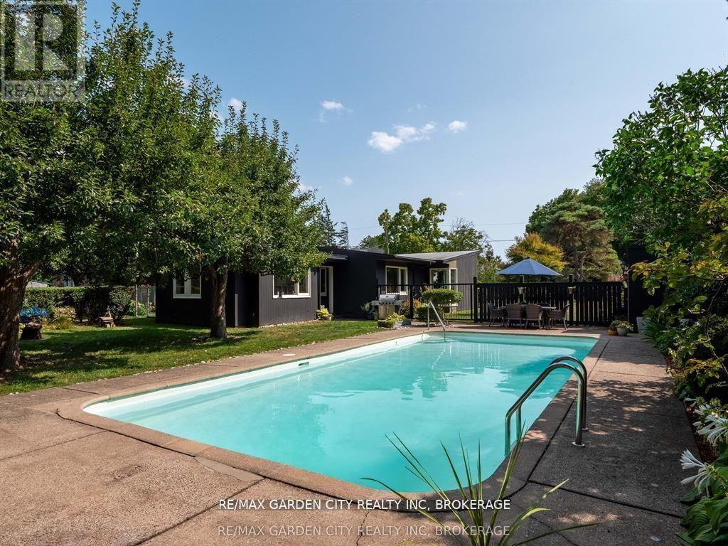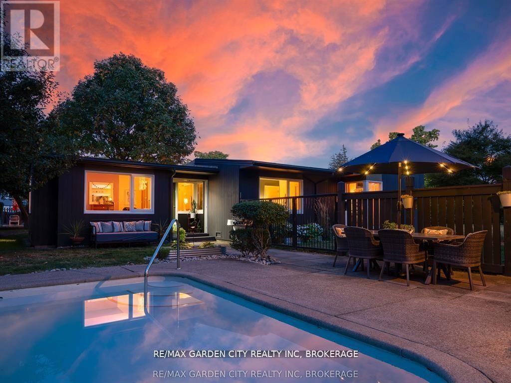 Oversized Lot on Martindale Pond Preserved Mid-Century Modern Retreat / Potential Development Opportunity. (LOT SIZE 90 x 164.90) Step into timeless style with this unique mid-century modern residence that blends retro charm with todays lifestyle. Situated on an oversized double lot, it offers both convenience and serenity minutes from the city and highways, yet tucked away in a private, tree-lined setting. Inside, authentic mid-century features shine: brick and wood accent walls, built-in cabinetry and bookshelves, floor-to-ceiling and picture windows, sloped ceilings and rooflines, Red Cedar siding, and original hardwood floors. The Frank Lloyd Wright inspired design emphasizes clean lines, natural light, and flowing spaces ideal for entertaining or relaxing at home. Outdoors, enjoy a sparkling pool, perennial gardens, and Martindale Pond just steps away. The neighbourhood also offers community access to the pond with kayaks, canoes, a deck, and sitting area for all to enjoy. This rare property provides the best of both worlds-easy city access with the feel of a private retreat. Recent upgrades include: bathroom renovation (2025), new air-conditioning with warranty (2025), full exterior paint (2023), entire pool decking lifted/reset (2019), pool concrete resurfaced and repainted (2021), and new 15-amp panel in pool shed (2025). (id:10317)