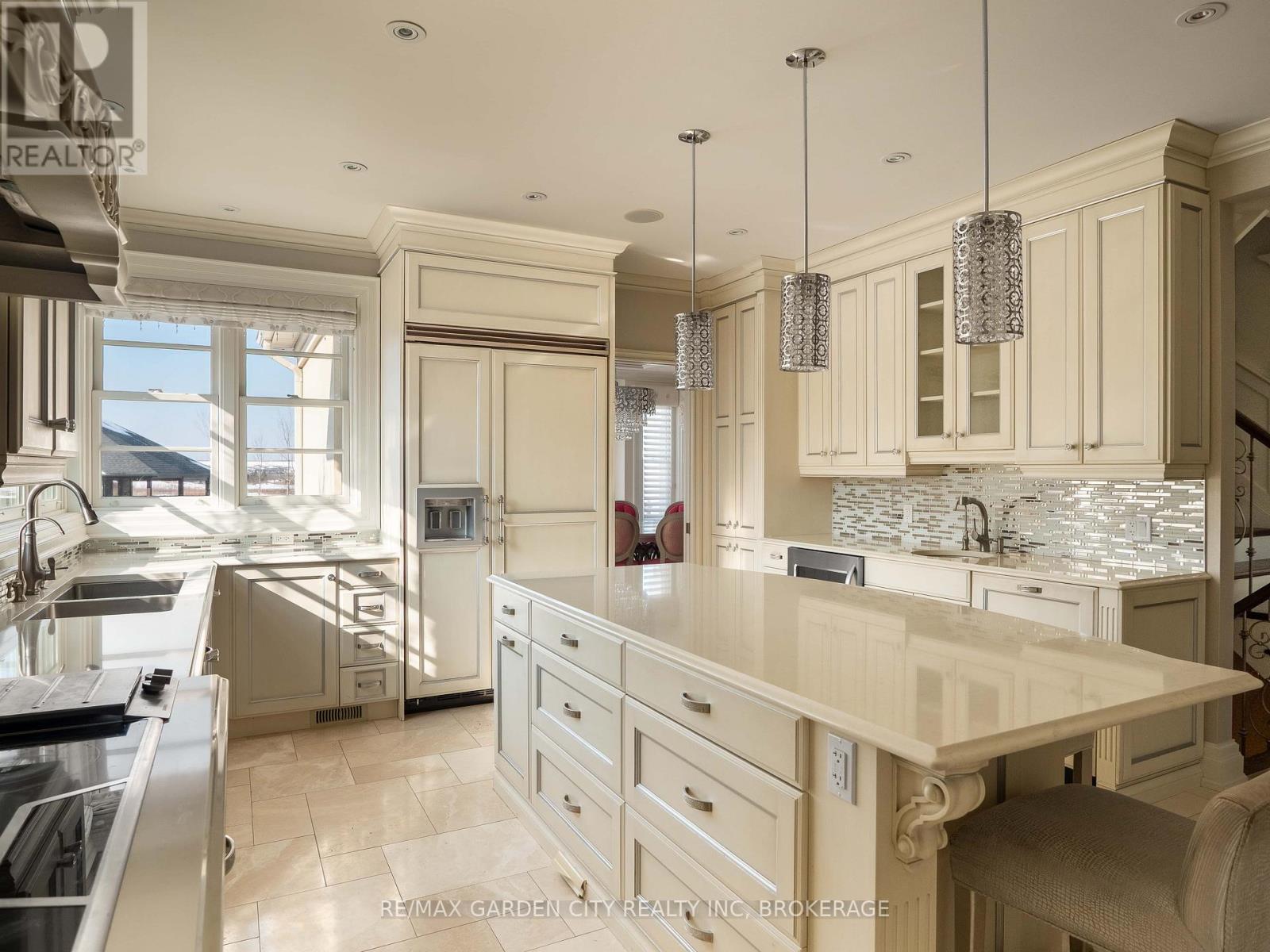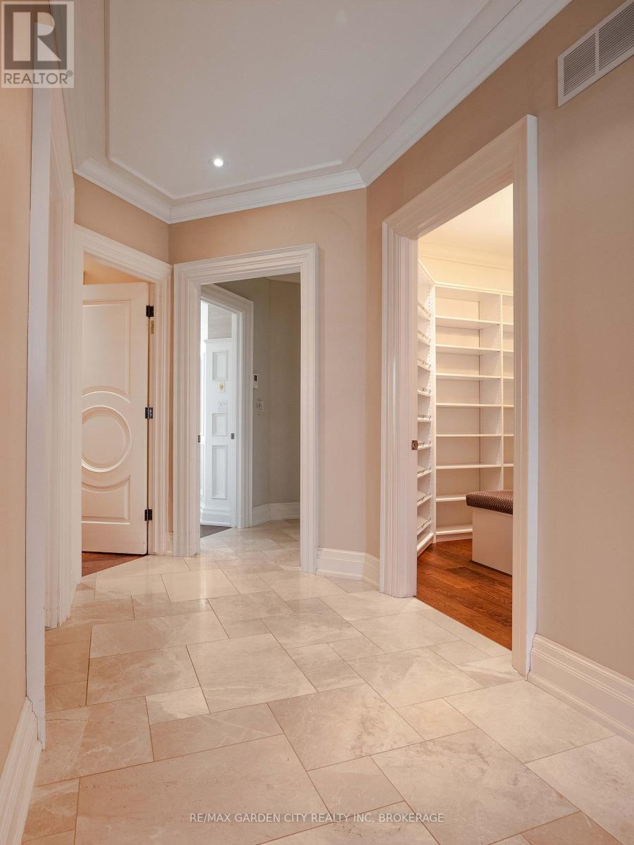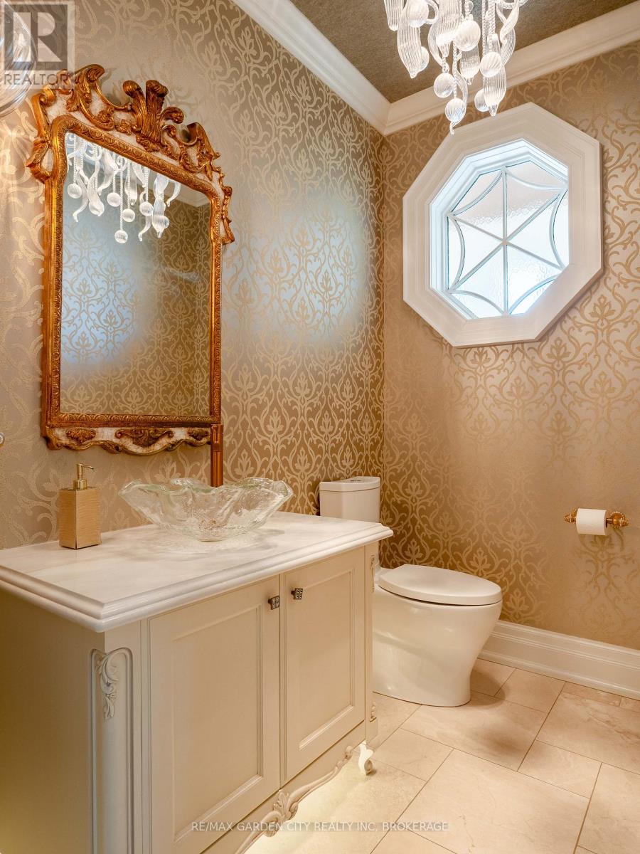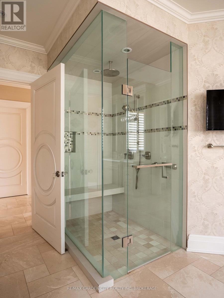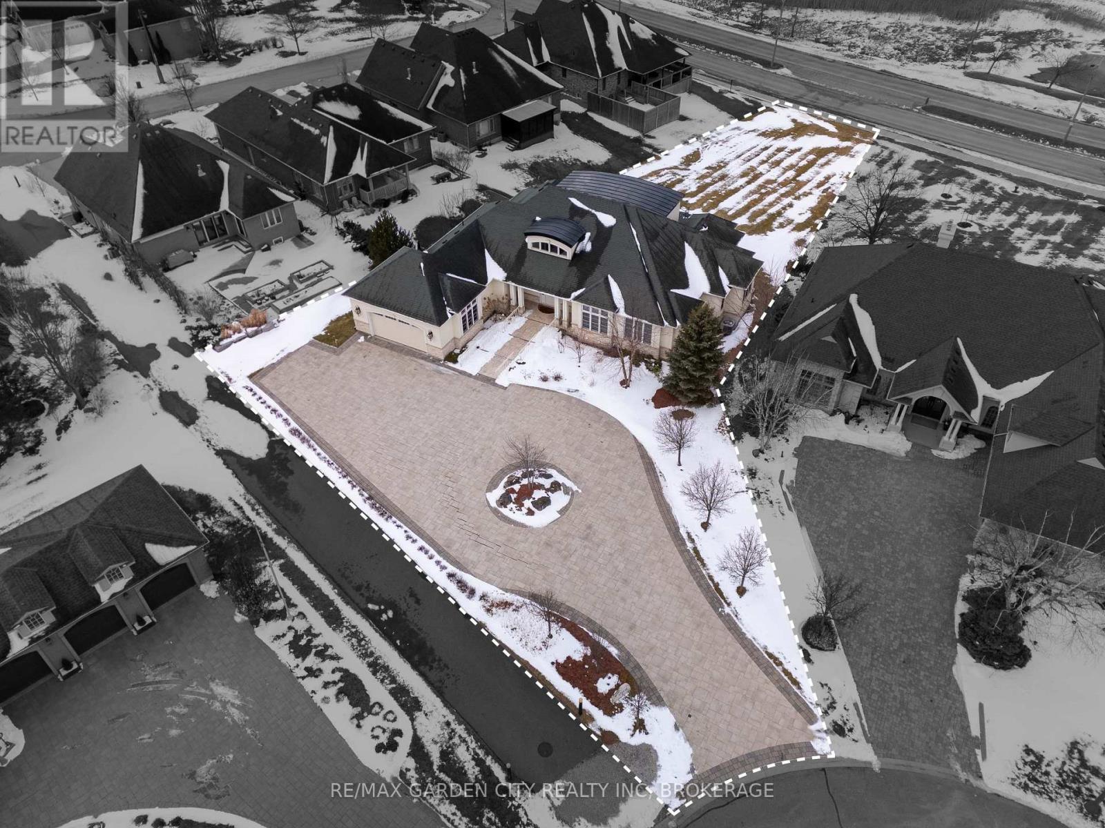 Welcome to Muirfield Trail - a 3,647 sq ft custom estate built in 2014 by Homes by Hendriks. Set on an oversized premium lot with canal views, this residence offers privacy and a commanding presence. A circular driveway framed by mature landscaping creates a grand arrival while accommodating parking for up to 12 vehicles. Designed for refined main-floor living, the layout blends elegance and function. The private primary wing features dual walk-in closets and a luxurious six-piece ensuite. Two additional rooms along this corridor, originally designed as his-and-hers offices, offer flexibility as bedrooms, nursery, or a den. Upstairs, two generously sized bedrooms each include private bathrooms. Expansive patio doors flood the main living space with natural light. Seamless flow connects the garage through a secondary foyer, pantry, and laundry to the oversized custom kitchen, complete with paneled high-end appliances and curated stone and tile finishes. The finished lower level adds versatility with a powder room, storage, cedar-lined closet rooms, and spacious recreation area ideal for entertaining or extended family living. Located in The Highlands, one of Welland's premier adult lifestyle communities, residents enjoy maintenance-free living with lawn care and snow removal included, plus access to a private clubhouse with saltwater pool, fitness centre, tennis and pickleball courts, and vibrant social programming. An exceptional estate defined by craftsmanship and resort-calibre living. (id:10317)