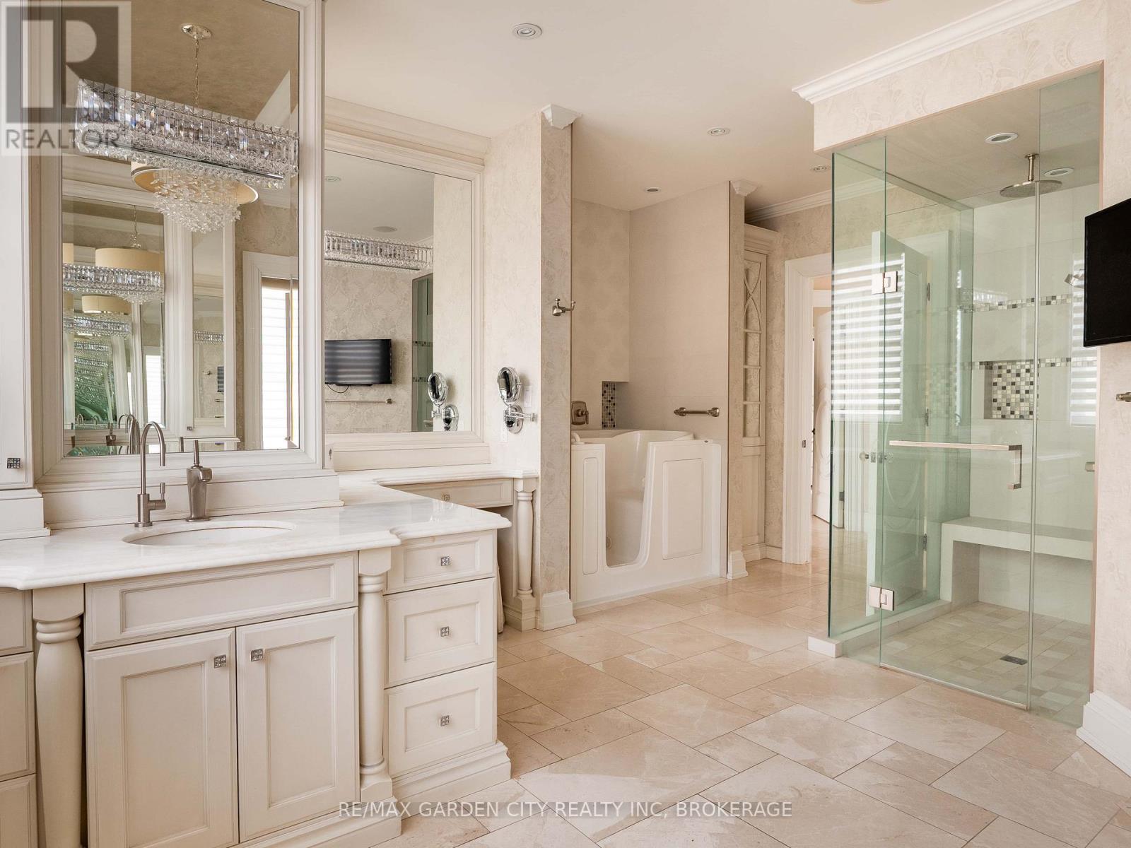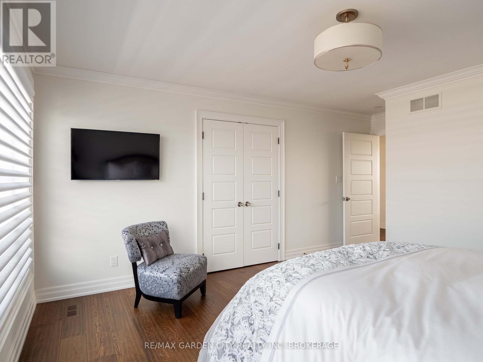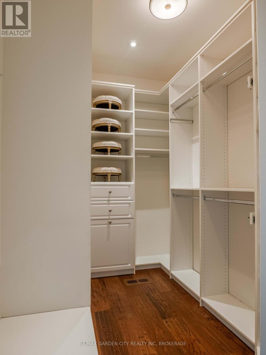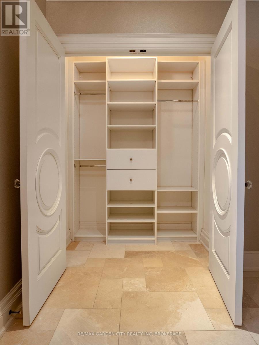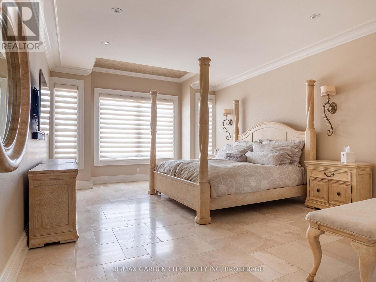 Welcome to Muirfield Trail - a 3,647 sq ft custom estate built in 2014 by Homes by Hendriks. Set on an oversized premium lot with canal views, this residence offers privacy and a commanding presence. A circular driveway framed by mature landscaping creates a grand arrival while accommodating parking for up to 12 vehicles. Designed for refined main-floor living, the layout blends elegance and function. The private primary wing features dual walk-in closets and a luxurious six-piece ensuite. Two additional rooms along this corridor, originally designed as his-and-hers offices, offer flexibility as bedrooms, nursery, or a den. Upstairs, two generously sized bedrooms each include private bathrooms. Expansive patio doors flood the main living space with natural light. Seamless flow connects the garage through a secondary foyer, pantry, and laundry to the oversized custom kitchen, complete with paneled high-end appliances and curated stone and tile finishes. The finished lower level adds versatility with a powder room, storage, cedar-lined closet rooms, and spacious recreation area ideal for entertaining or extended family living. Located in The Highlands, one of Welland's premier adult lifestyle communities, residents enjoy maintenance-free living with lawn care and snow removal included, plus access to a private clubhouse with saltwater pool, fitness centre, tennis and pickleball courts, and vibrant social programming. An exceptional estate defined by craftsmanship and resort-calibre living. (id:10317)